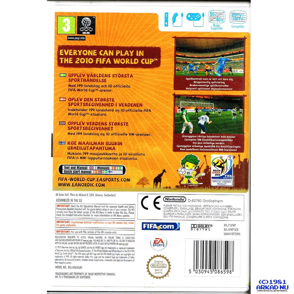 2010 FIFA WORLD CUP SOUTH AFRICA WII SVENSK UTGÅVA - RVL-SFWP-SCN