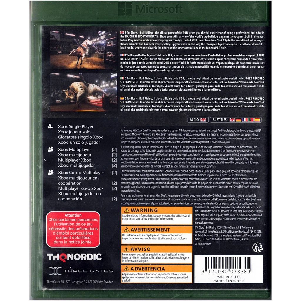 8 To Glory - Bull Riding, PBR:s officiella spel ger dig hela upplevelsen av att vara en professionell tjurryttare. Visa dina färdigheter som en av världens bästa tjurryttare mot idrottens tuffaste tjurar. Spela säsongsläge där du går igenom 2018-säsongen från New York City till finalen i Las Vegas. Lås upp belöningar inklusive nya tjurar och ryttare som du kan utmana när som helst och samla poäng på din väg till mästerskapet. Utmana en vän lokalt, där en spelare är ryttaren och den andra kontrollerar en berömd PBR-tjur.