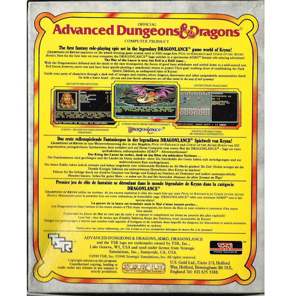 Champions of Krynn is role-playing video game, the first in a three-part series of Dragonlance Advanced Dungeons & Dragons "Gold Box" games. The game was released in 1990. The highest graphics setting supported in the MS-DOS version was EGA graphics. It also supported the Adlib sound card and either a mouse or joystick.