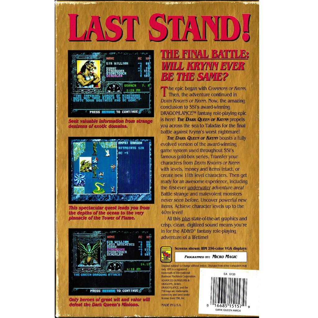 The Dark Queen of Krynn is the third in a three-part series of Dragonlance Advanced Dungeons & Dragons "Gold Box" role-playing video games. The game was released in 1992