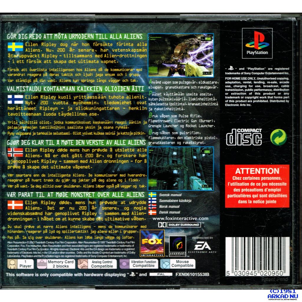 ALIEN RESURRECTION PS1 SVENSK UTGÅVA - SLES-02913