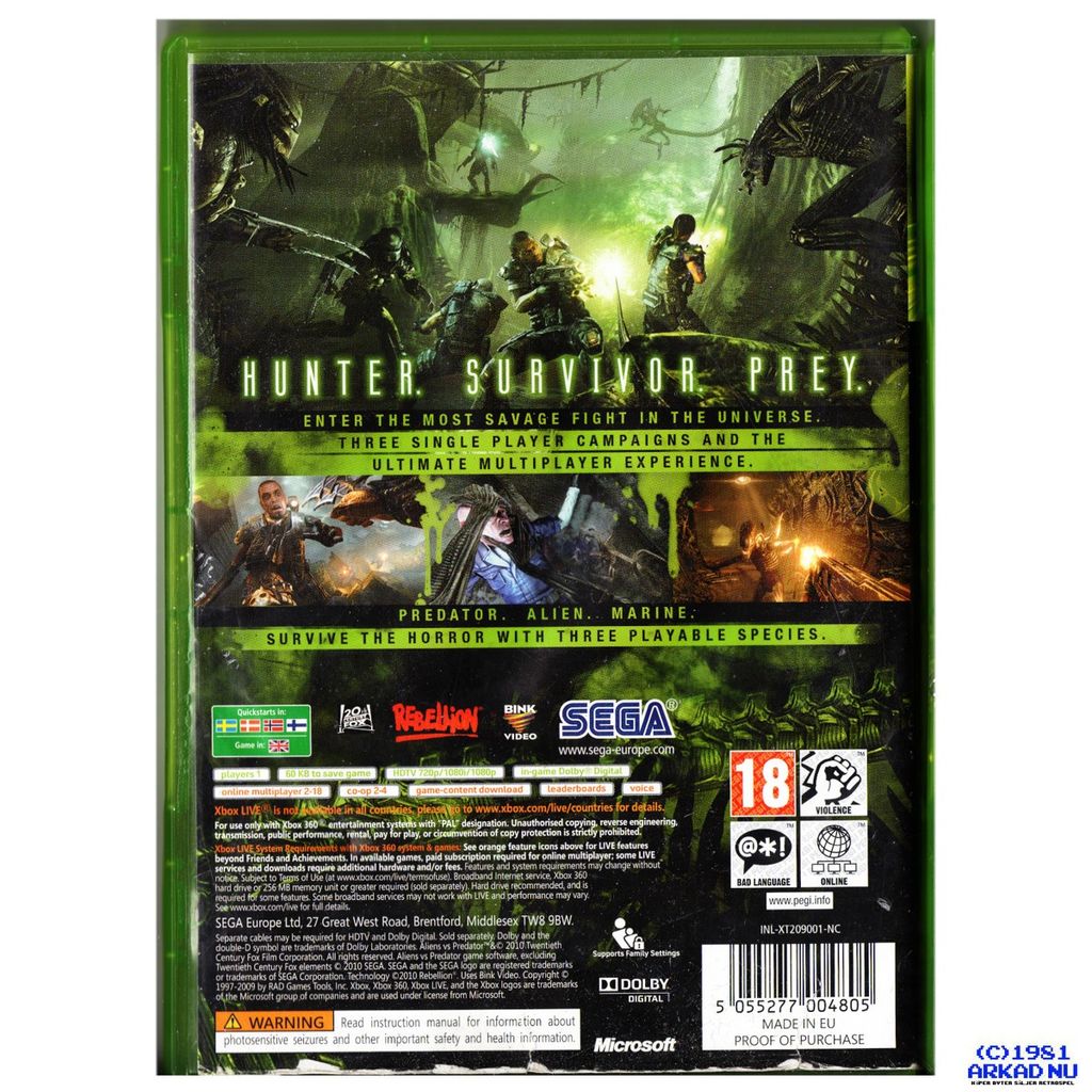 Beskrivning av ALIENS VS PREDATOR XBOX 360