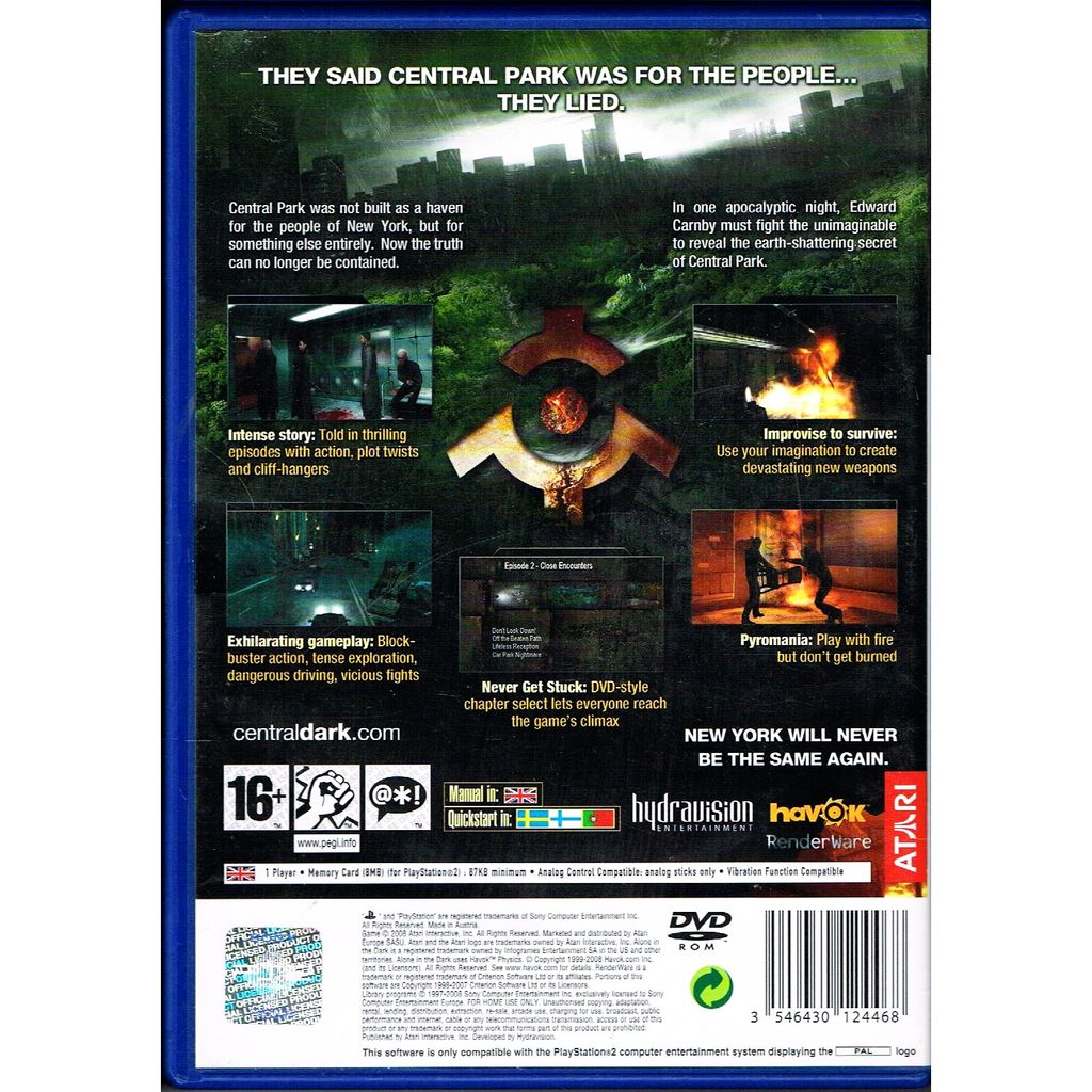 Alone in the Dark is the fifth installment of the survival horror video game series under the same name created by Atari. The game was released for Microsoft Windows, Xbox 360 and Wii in Europe, North America, and Australia in June 2008. The PlayStation 3 version, titled Alone in the Dark: Inferno, was released on November 18, 2008 and includes several enhancements from the other versions. The Windows, Xbox 360 and PlayStation 3 were released by Electronic Arts in Japan in December 2008.