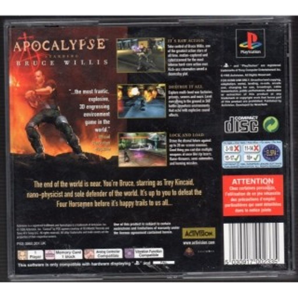 Apocalypse is a third-person shooter video game released for the PlayStation, developed by Neversoft and published by Activision. It is notable for featuring actor Bruce Willis, who provides the main character's likeness and voice, as well as being the first original game by Neversoft, prior to launching their blockbuster Tony Hawk franchise.