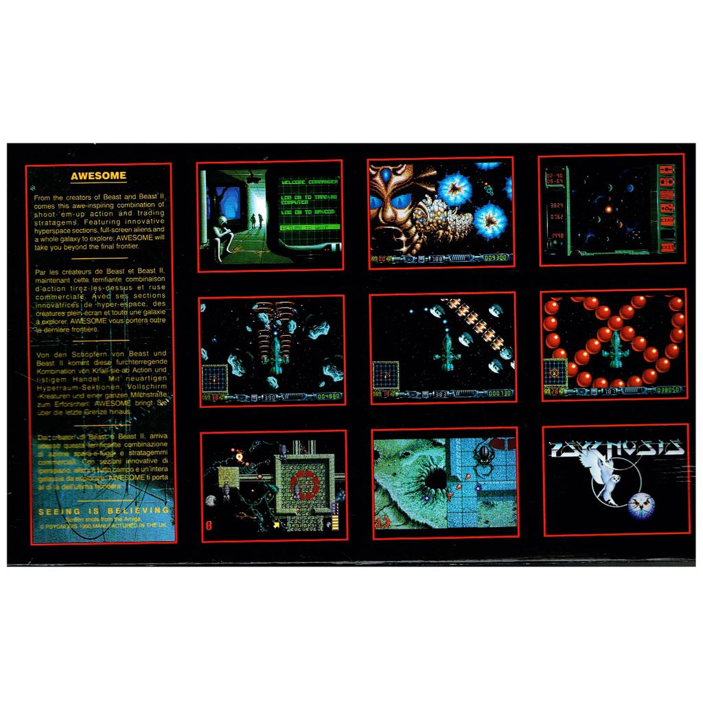 The theme music for Awesome was composed by Tim Wright. The box art for Awesome was painted by science fiction artist John Harris.