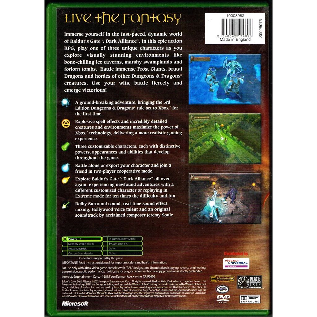 BALDURS GATE DARK ALLIANCE XBOX