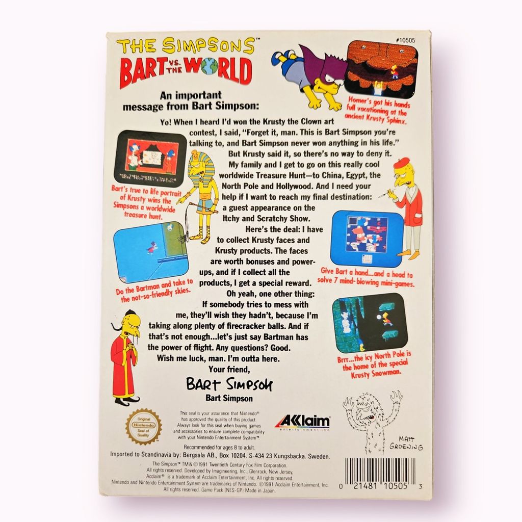 The Simpsons: Bart vs. the World är ett TV-spel lanserat 1991 och 1992 till NES, Game Boy, Sega Master System och Game Gear, och 1993 till Commodore Amiga. Det var utvecklat av Imagineering och publicerat av Acclaim.