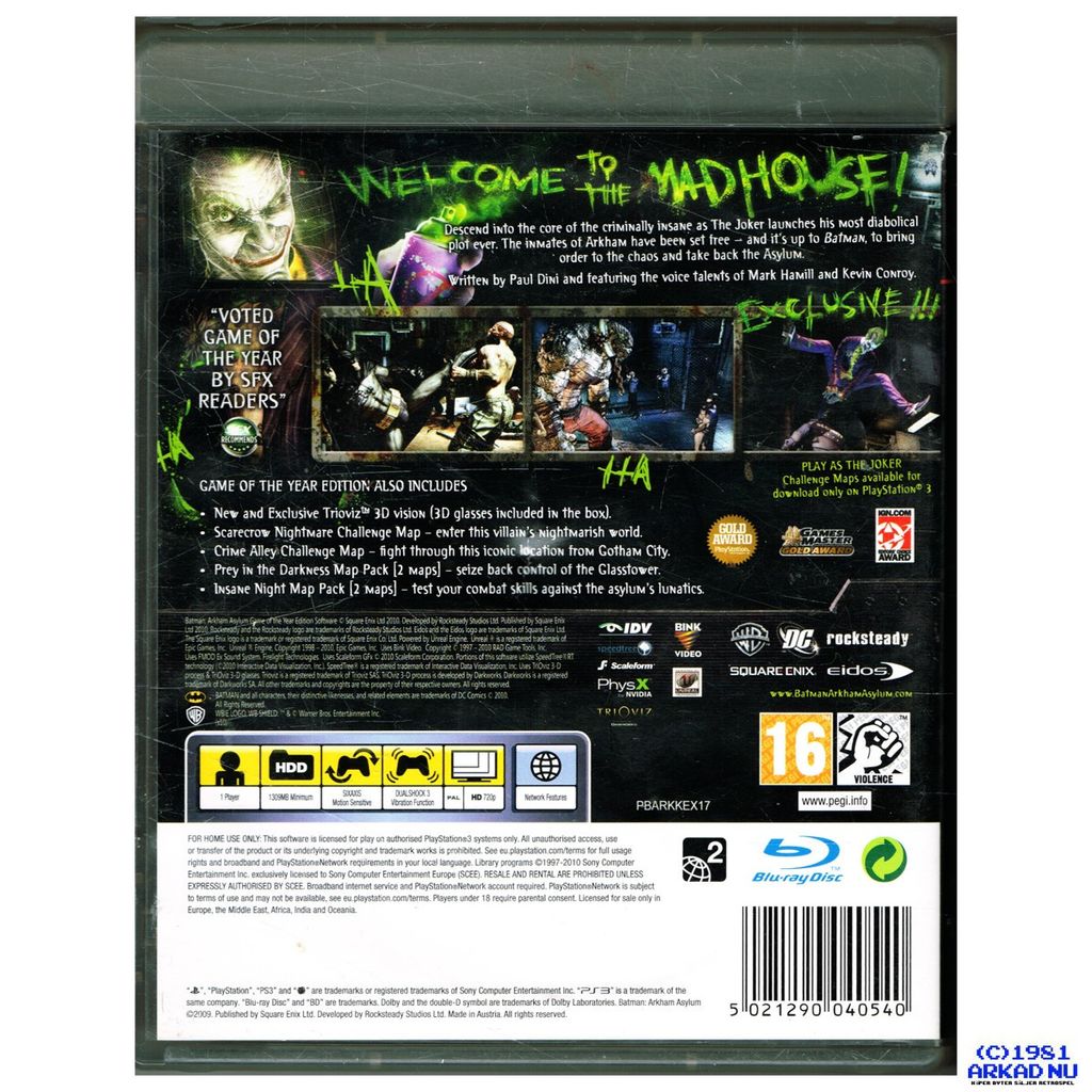 Beskrivning av BATMAN ARKHAM ASYLUM GAME OF THE YEAR EDITION PS3
