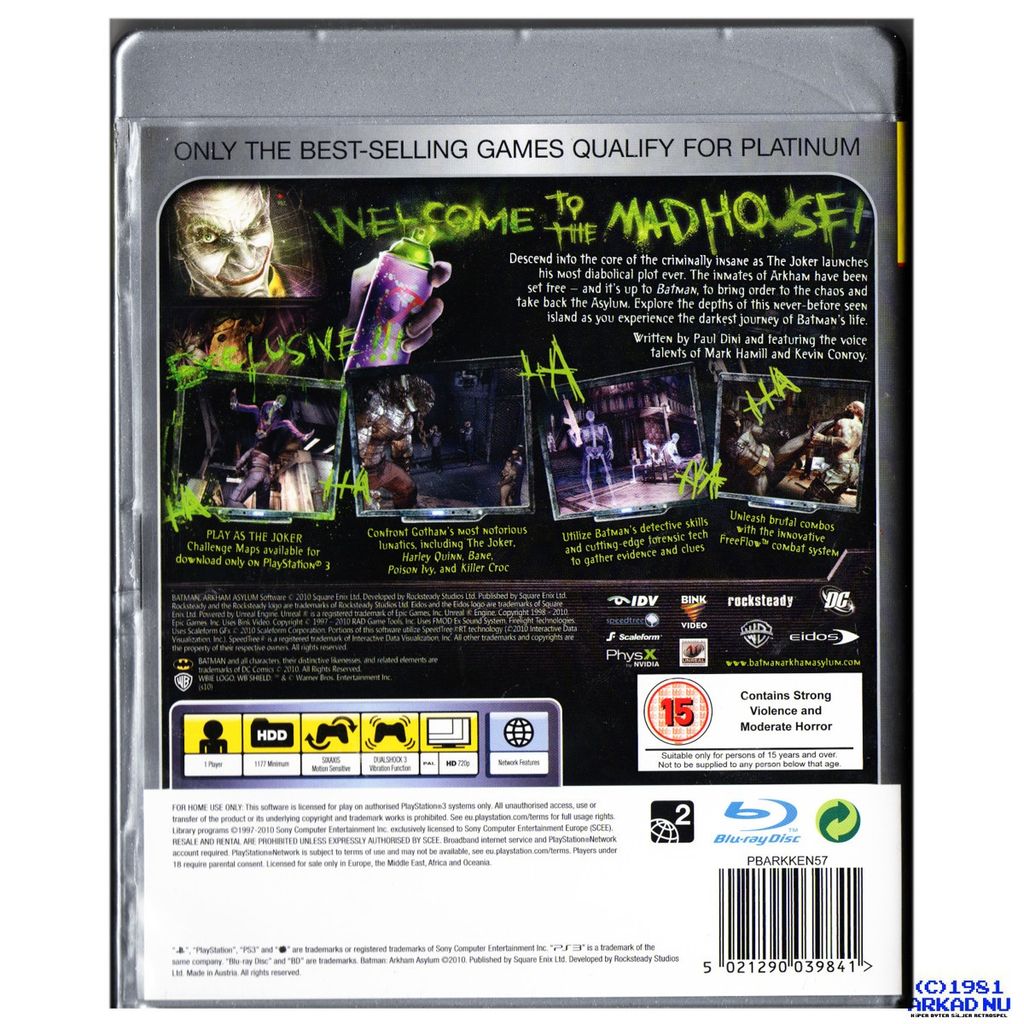 BATMAN ARKHAM ASYLUM PS3 - BLES-00503 PLATINUM