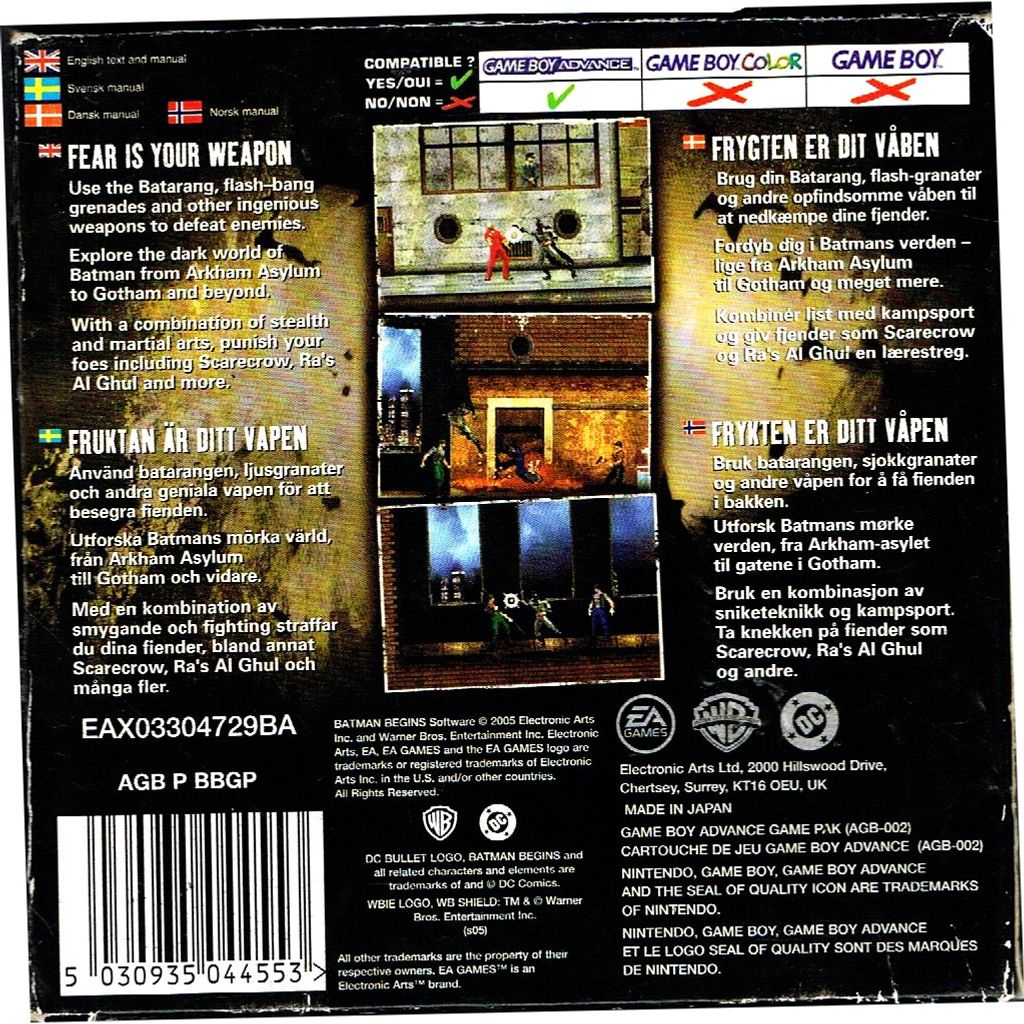 Beskrivning av BATMAN BEGINS GAMEBOY ADVANCE