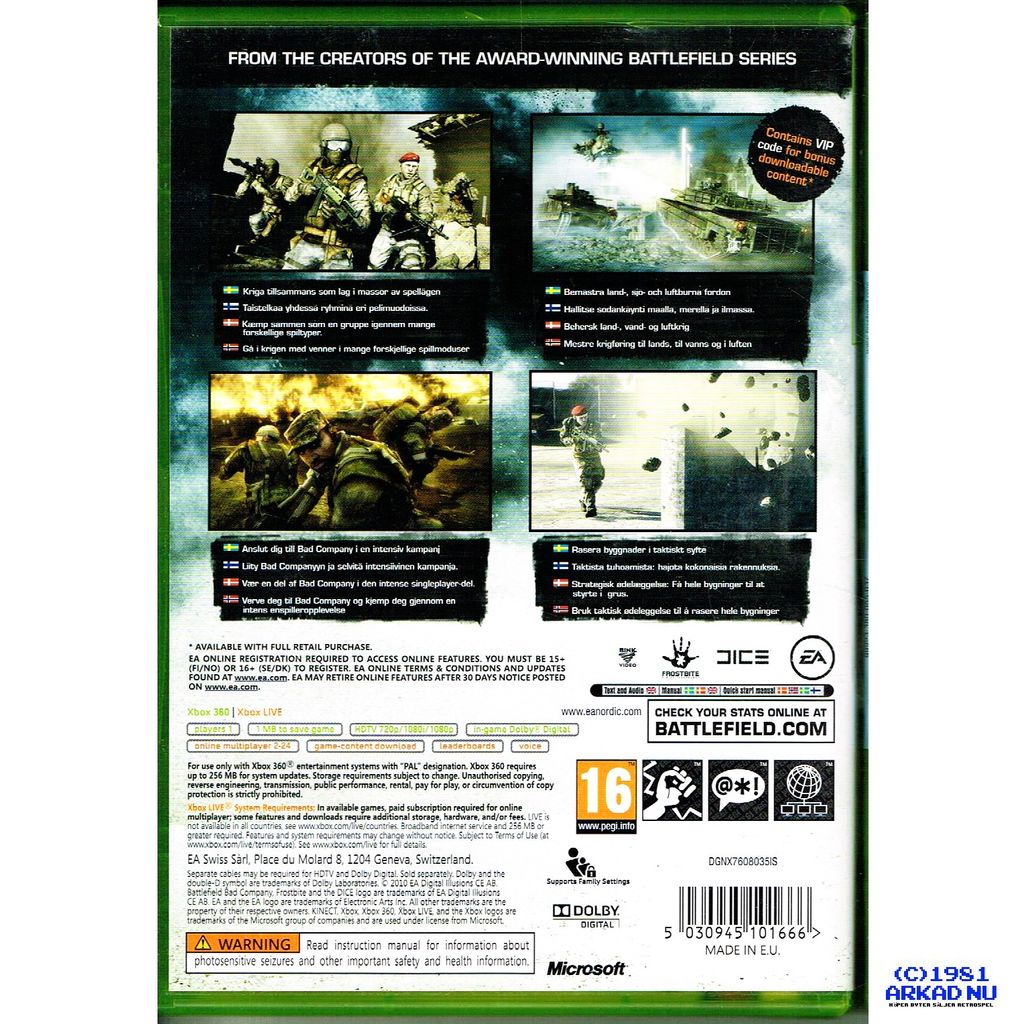 BATTLEFIELD BAD COMPANY 2 XBOX 360 CLASSICS SVENSK UTGÅVA - DGNX7608035IS