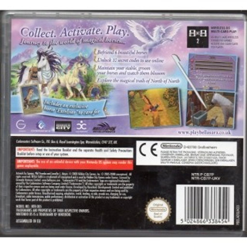 Bella Sara is a life-simulation and puzzle video game released for Nintendo DS and Microsoft Windows in North America and the PAL region in October 2008. The game is based on the trading card and website for girls Bella Sara. It will immerse the player in a world filled with fantasy horses, with the ability to ride, care for, accessorize and trade those horses with friends over Wi-Fi. In addition, players will be able to discover secret items, exclusive cards and codes to activate on the official website.
