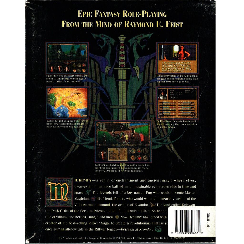 Although neither the dialog nor narrative were written by Feist himself, the game is considered canon, having been novelized as Krondor: The Betrayal five years later. Events in the game were also written into the Riftwar novels.