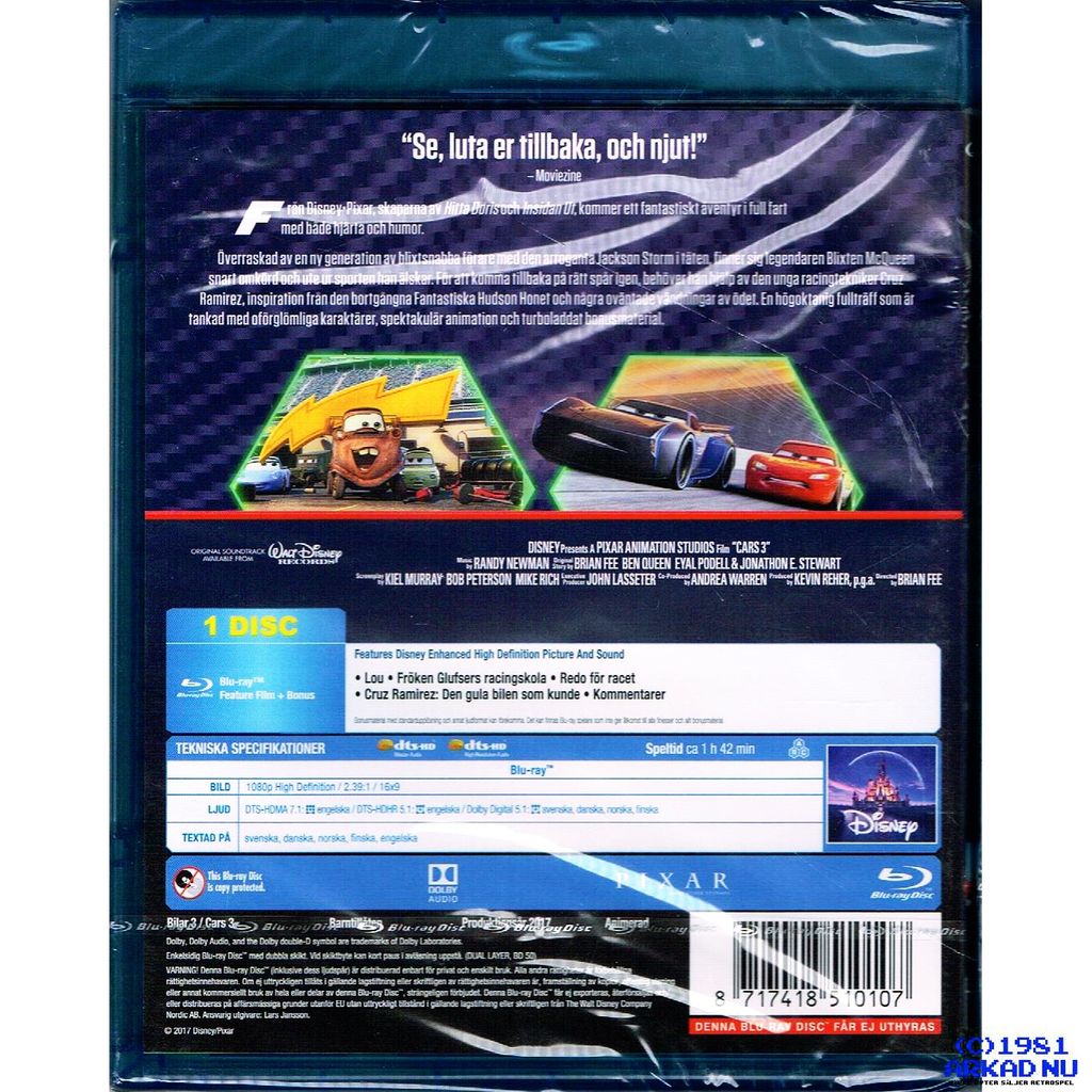 Från Disney/Pixar, skaparna av Hitta Doris och Insidan Ut, kommer ett fantastiskt äventyr i full fart med både hjärta och humor. Överraskad av en ny generation av blixtsnabba förare med den arroganta Jackson Storm i täten, finner sig legendaren Blixten McQueen snart omkörd och ute ur sporten han älskar. För att komma tillbaka på rätt spår igen, behöver han hjälp av den unga racingtekniker Cruz Ramirez, inspiration från den bortgångna Fantastiska Hudson Honet och några oväntade vändningar av ödet. En högoktanig fullträff som är tankad med oförglömliga karaktärer och spektakulär animation!