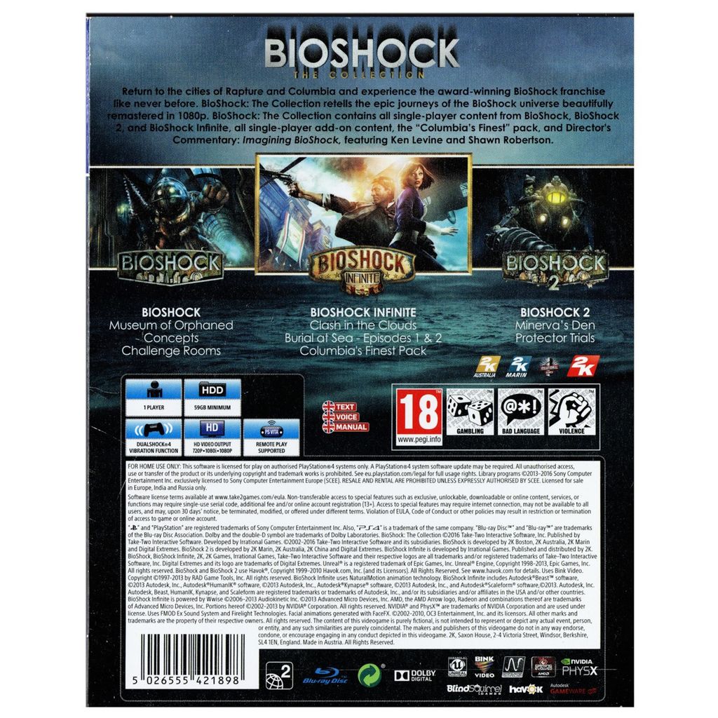 Återvänd till Rapture och Columbia och upplev den prisbelönta BioShock serien som aldrig förr. BioShock The Collection återberättar de episka resorna i BioShock universumet vackert remastrat i hög upplösning. BioShock: The Collection innehåller allt single-player innehåll från BioShock, BioShock 2 och BioShock: Infinite, allt single-player add-on innehåll plus "Columbia's Finest" pack.