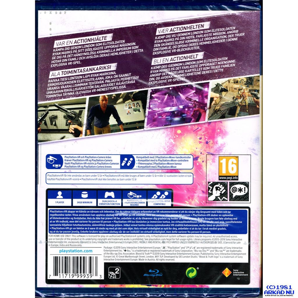 Blood and Truth erbjuder en fullständig enspelar-shooter-kampanj. Det tar spelare till Londons gator där de möter olika gäng. Du spelar som en före detta SAS-soldat och använder två Move-rörelsekontroller. Rörelse är nodbaserad, så att du kan välja mellan platser att röra dig till.