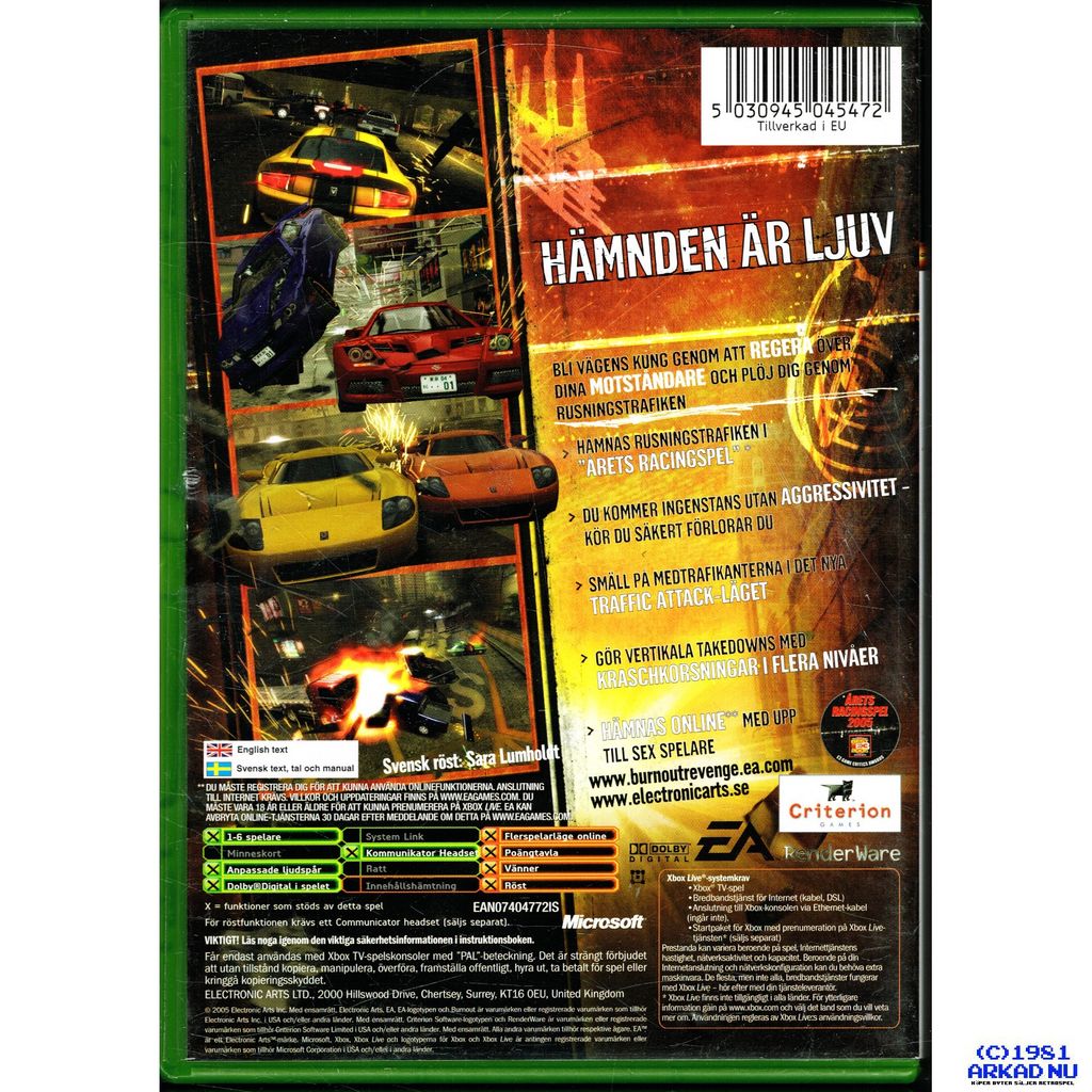 BURNOUT REVENGE XBOX SVENSK UTGÅVA - EAN077404772IS