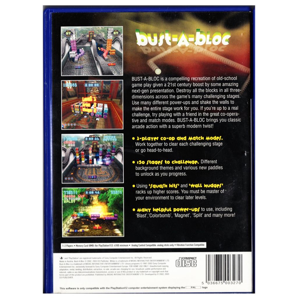In addition to the single player game Bust-A-Bloc has a player-versus-player and a co-operative mode, one hundred and fifty levels, four camera angles and many power-ups.