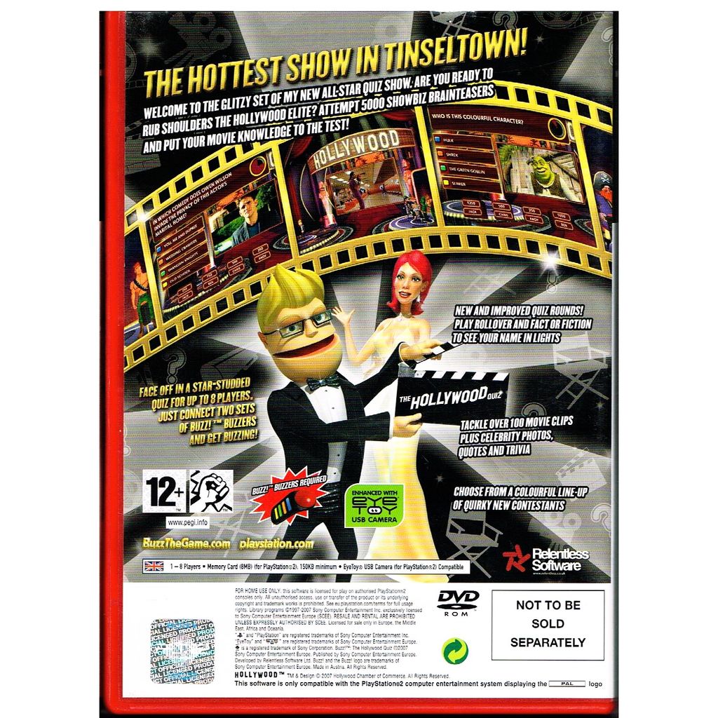 Buzz!: The Hollywood Quiz is the fifth installment in the Buzz! series of video games developed for the PlayStation 2 by Relentless Software. Players have to answer questions asked by the quiz master (the eponymous Buzz) using the four Buzz! remote controls.There are two games available in the single player mode, which are Time Builder, where answering questions will gain time in the final round, and Hotseat, where players must answer as many questions as they can, using the time they accumulated in Round 1. To gain points, players must bank when appropriate. If they get a question wrong, they lose all the points they did not bank.
