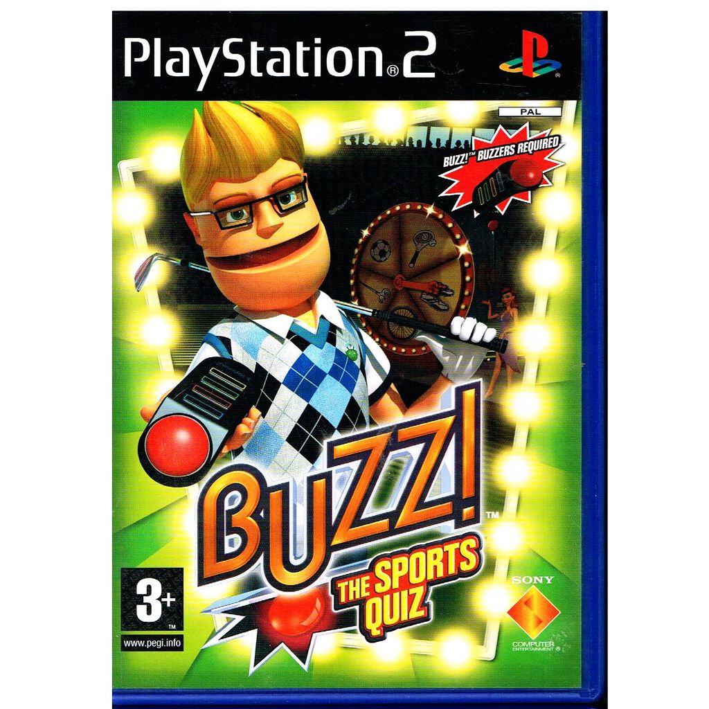 Buzz!: The Sports Quiz for the PlayStation 2, is the third game in the Buzz! series and was developed by Kuju Entertainment. Players answer questions asked by the Quizmaster (Buzz) using their Buzz! buzzers.