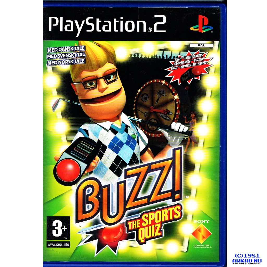 Buzz!: The Sports Quiz for the PlayStation 2, is the third game in the Buzz! series and was developed by Kuju Entertainment. Players answer questions asked by the Quizmaster (Buzz) using their Buzz! buzzers.