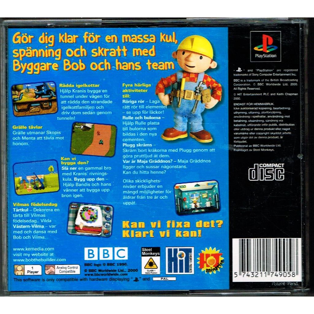 Beskrivning av BYGGARE BOB KAN VI FIXA DET PS1 BYGGARE BOB KAN VI FIXA DET PS1 - SLES-03562 KOMPLETT I BOX