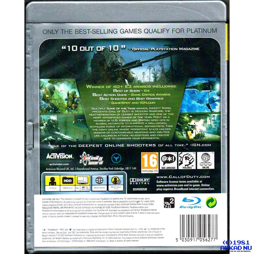 CALL OF DUTY 4 MODERN WARFARE PS3 PLATINUM - BLES-00148/P