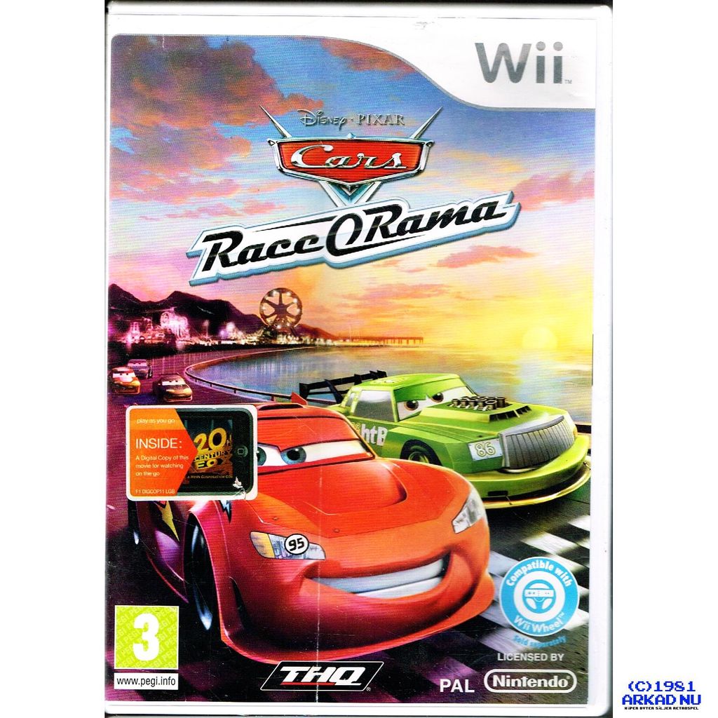 Cars: Race-O-Rama is the third game in the Cars series, and for the first time you can make your own Lightning McQueen. Characters like Sally and The King do not appear in this game. In this game, Lightning McQueen and the Doc Hudson Racing Academy face off against Chick Hicks, who opened his own Racing Academy, and teaches his students to cheat. Play as Lightning McQueen, Mater, & Guido to win the Race-O-Rama series.