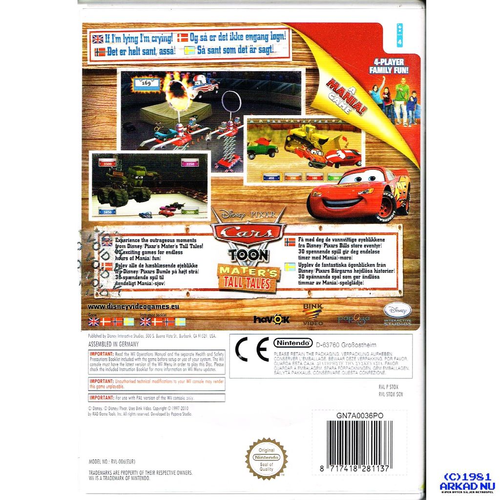 CARS TOON MATERS TALL TALES WII - RVL-STOX-SCN