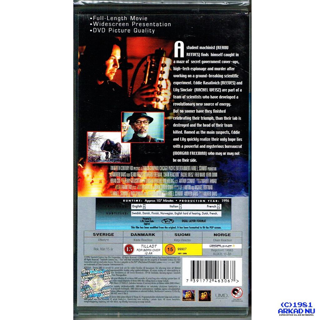 Beskrivning av CHAIN REACTION UMD FILM CHAIN REACTION UMD FILM - F1-USSCA-04130U Two researchers in a green alternative energy project are put on the run when they are framed for murder and treason. KOMPLETT I BOX