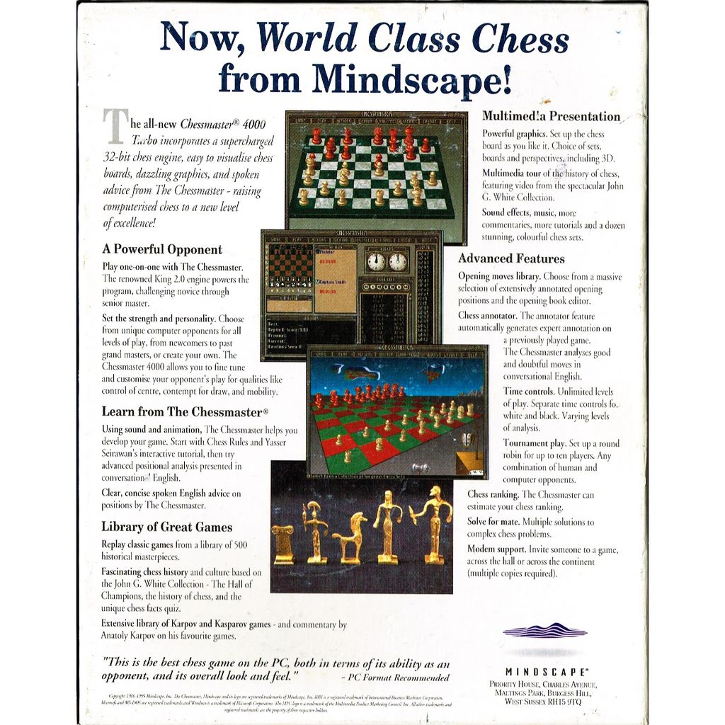 Beskrivning av CHESSMASTER 4000 TURBO PC BIGBOX