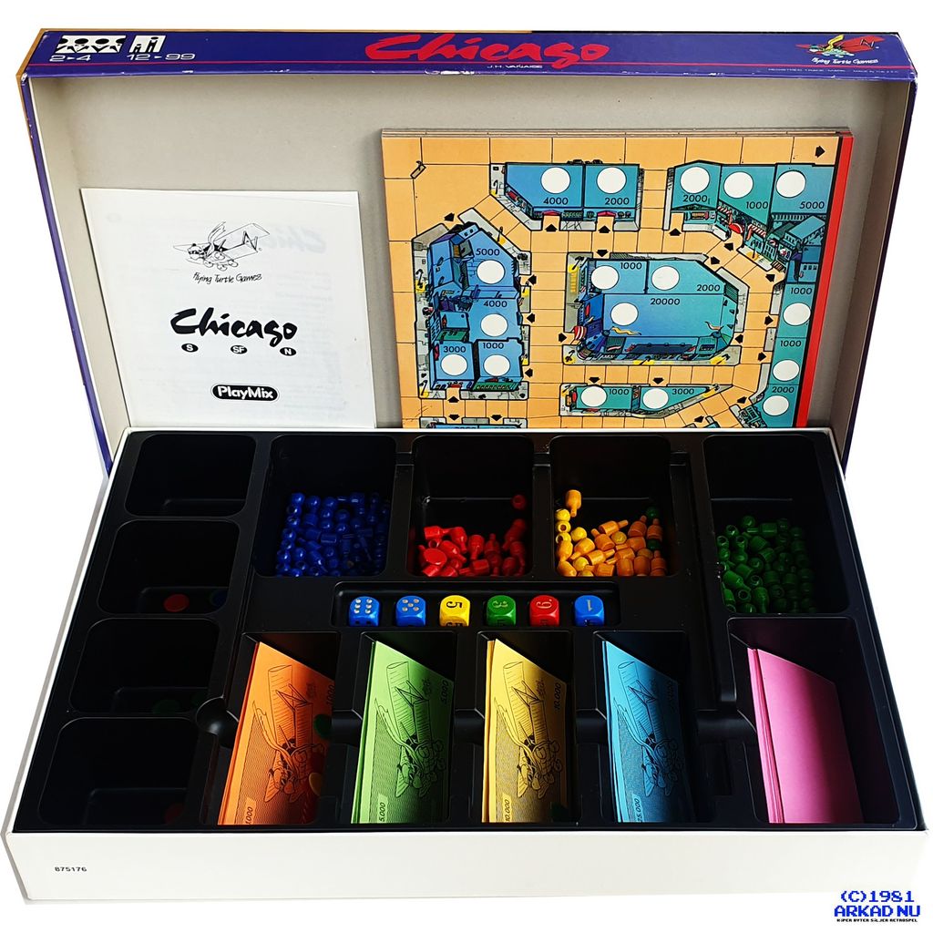 Beskrivning av CHICAGO PLAYMIX, FLYING TURTLE SÄLLSKAPSSPEL CHICAGO PLAYMIX, FLYING TURTLE SÄLLSKAPSSPEL 1987 KOMPLETT I BOX