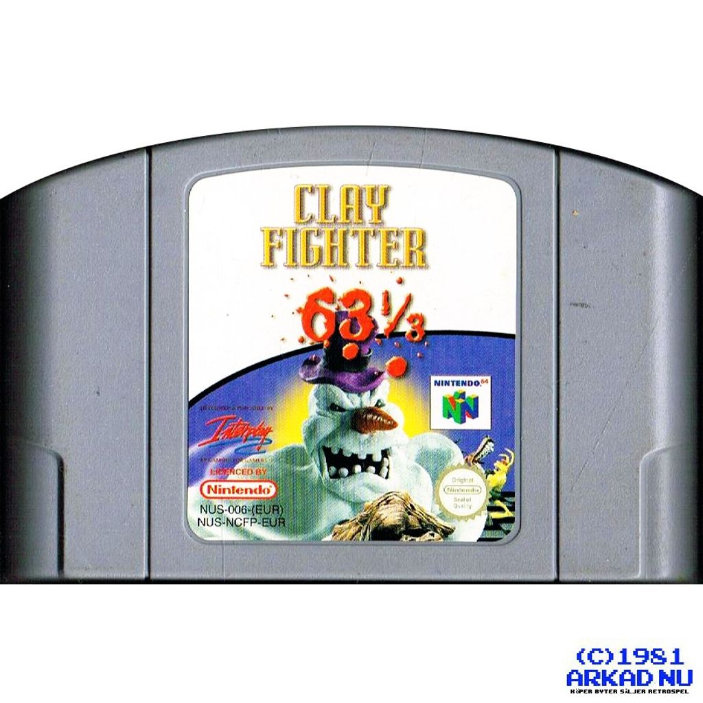 ClayFighter 63⅓ is a fighting video game developed and published by Interplay Productions for the Nintendo 64 (N64) video game console in 1997. Its title is a parody of other games released for the N64 at the time, many of which were popular franchises with "64" suffixed (such as Super Mario 64). An updated version of the game, ClayFighter: Sculptor's Cut, released as a rental-only game in 1998, is one of the rarest and most expensive N64 games. It, along with Rakugakids was one of the only 2D fighting games released exclusively for the N64.