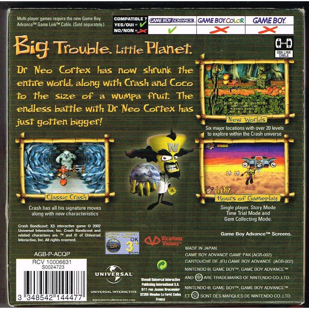 Beskrivning av CRASH BANDICOOT XS GAMEBOY ADVANCE