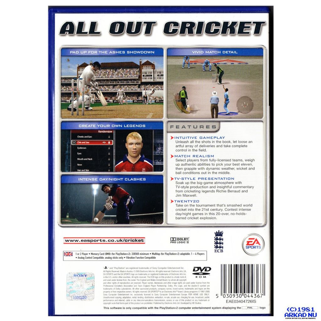 Electronic Arts continues its yearly cricket franchise with this outing. The Australian, English, South African and New Zealand national and league teams' names and likenesses are licensed. If you don't want likenesses of official players, then make your own with the built-in player editor to make the game custom to you. With 35 stadiums accurately modeled with real crowd noise the atmosphere is set for this TV style presentation (with action replay mode, third umpire, animated duck sequences, and TV style overlays) of cricket.