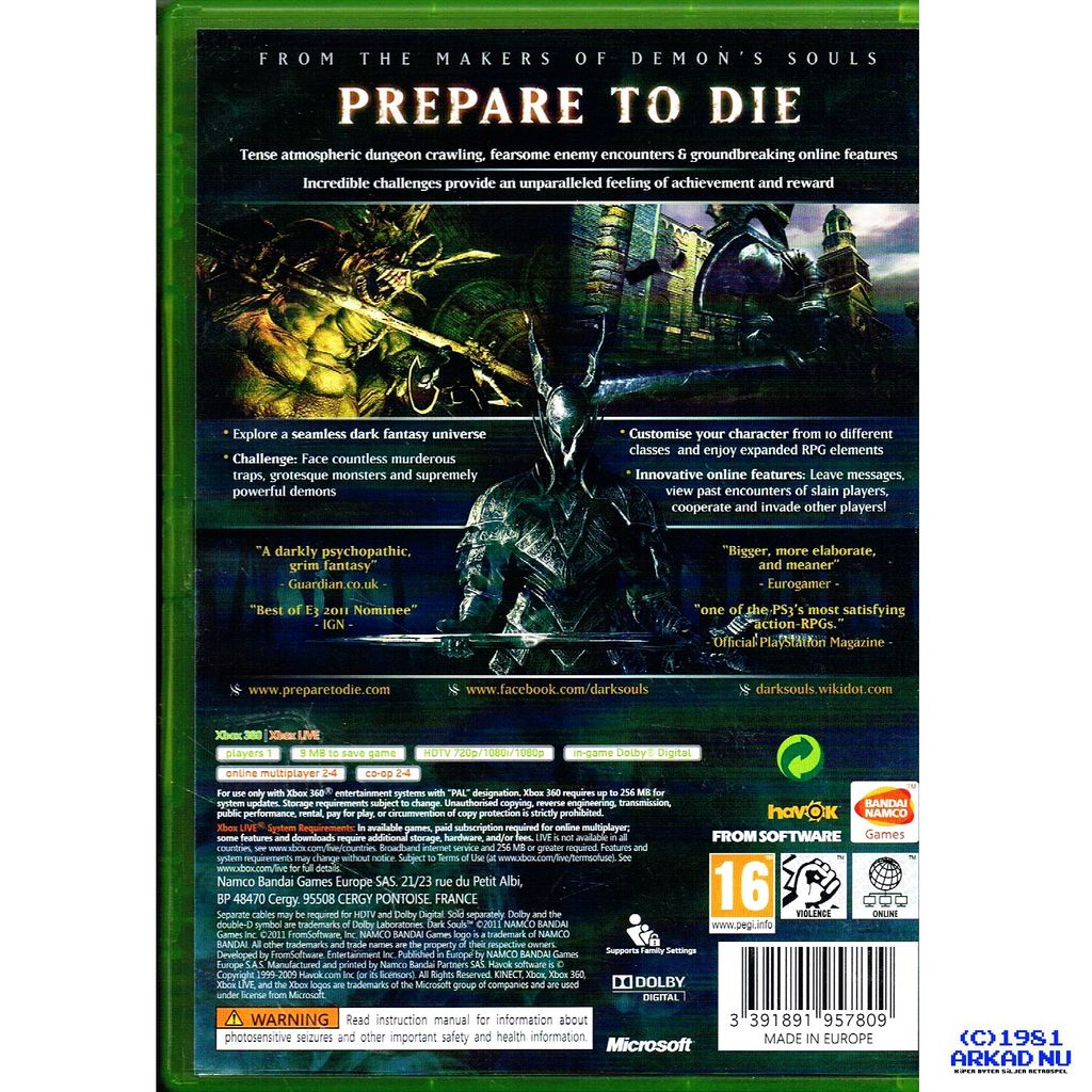 Dark Souls äger rum i det fiktiva kungadömet Lordran. Spelarna antar rollen som en förbannad mänsklig spelarfigur som har utsetts till att göra en pilgrimsfärd bort från Undead Asylum för att ta reda på de odödas öde. Berättelsen i Dark Souls skildras främst genom beskrivningar av olika föremål och dialoger med NPC-figurer i spelet. Spelaren måste pussla ihop de otydliga uppgifter som de får tag i för att kunna förstå berättelsen, istället för att ha det presenterat för denne i spelet. Dark Souls fick ryktbarhet på grund av dess hårda svårighetsgrad och oförsonliga utmaning. Spelvärlden är fylld av vapen, rustningar och förbrukningsartiklar som bistår spelaren under dennes äventyr.