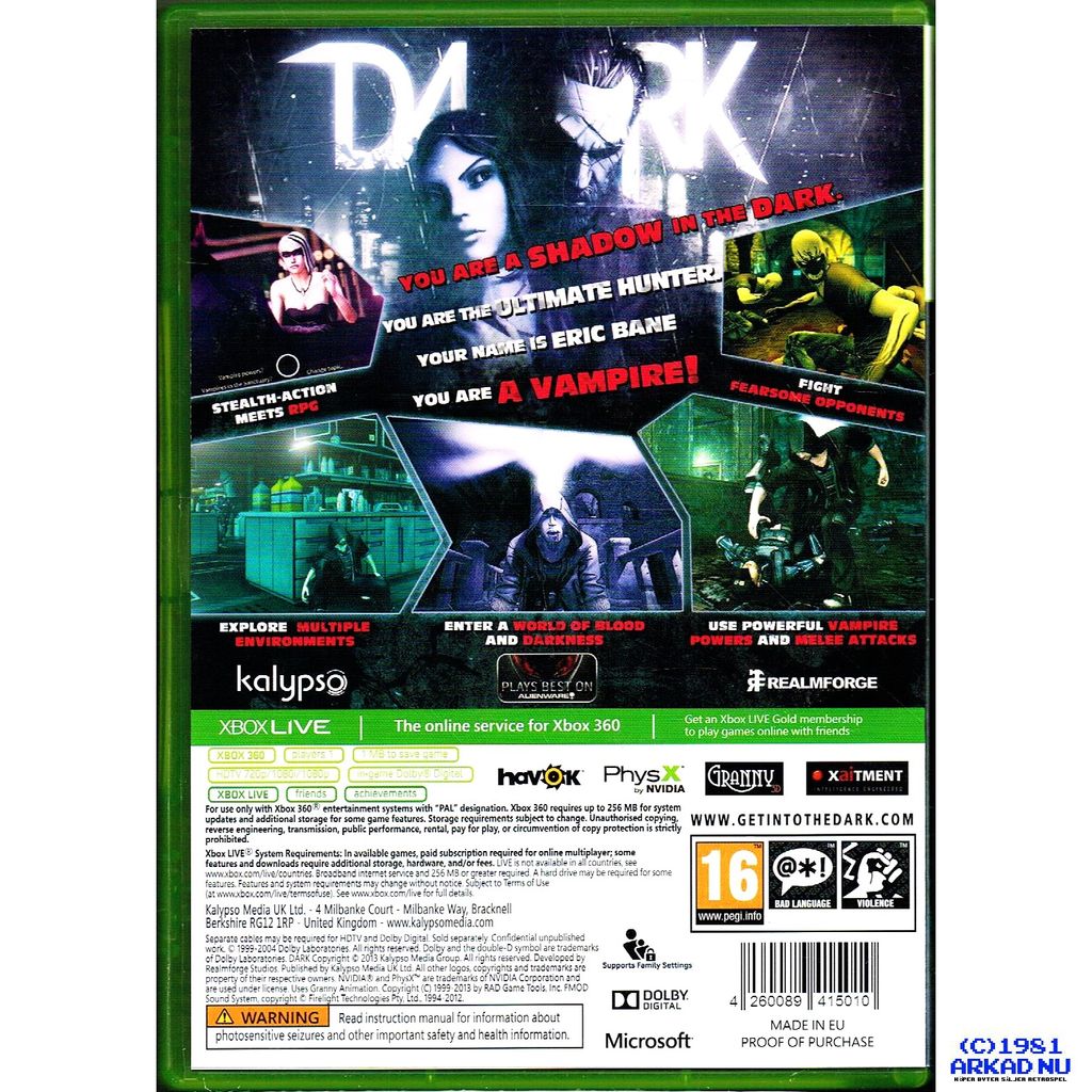 The gameplay of Dark is based on stealth combat. Eric has many supernatural vampiric 'skills' at his disposal; he can use Shadow Leap to quickly teleport to different areas and to perform stealth finishers, make himself temporarily invisible, see in the dark and slow down time. His abilities are linked to a certain amount of 'blood points' which are used up each time Eric uses a skill. He can drink blood from his enemies to restore his health and blood points.