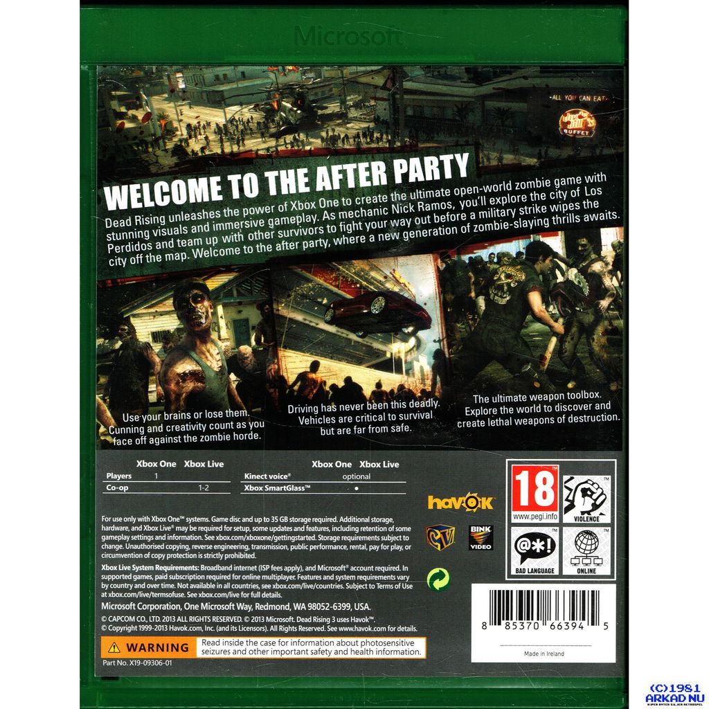 Dead Rising 3 finns endast för Xbox One och innebär att ett av de mest populära zombiespelen är här igen. Historien utspelas 10 år efter händelserna i Fortune City i Dead Rising 2 och spelarna får möta Nick Ramos, en ung mekaniker med en märklig tatuering och ett mystiskt förslutet som måste fly undan zombierna innan ett militäranfall utplånar staden Los Perdidos i Kalifornien för alltid. Nick kommer inte att klara det på egen hand - han måste samarbeta med andra som överlevt för att komma levande därifrån. Tillsammans måste de kämpa för att hitta en väg ut innan det är för sent.