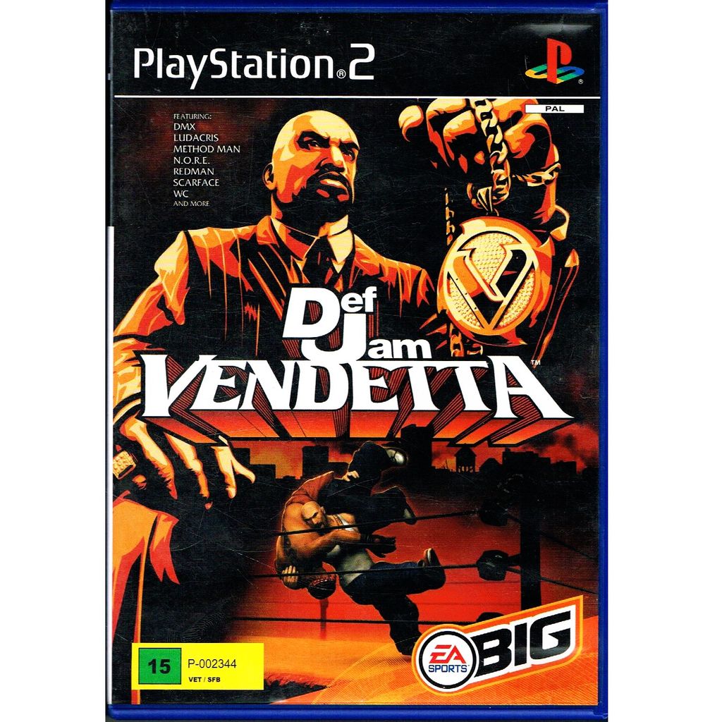 Def Jam Vendetta is a 2003 professional wrestling video game that combined hip hop with pro wrestling. It was released for the PlayStation 2 and GameCube under the EA Sports BIG label in North America and Europe, and the EA Games label in Japan. It was EA's first attempt at a wrestling game since the widely panned WCW Backstage Assault. Several hip hop artists were featured in the game, including DMX, Method Man, Redman, Ludacris, N.O.R.E., Capone, Scarface, Ghostface Killah, Keith Murray, WC, Joe Budden and DJ Funkmaster Flex; all of which at the time were artists of Def Jam. Singer Christina Milian was also featured in the game as Angel. A sequel, Def Jam: Fight for NY, was released on September 20, 2004 to largely positive reviews.