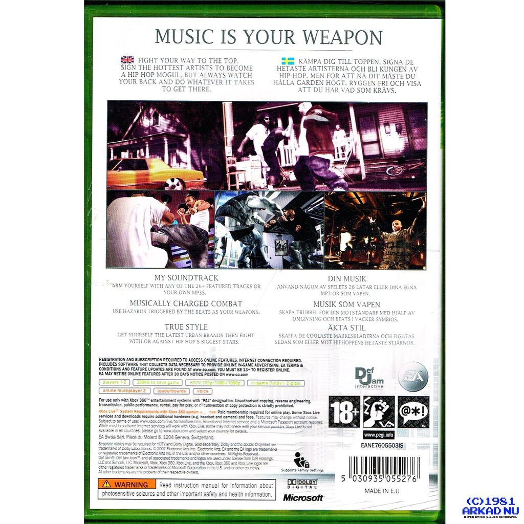 Utvecklarna Electronic Arts gjorde om Def Jam till ett renodlat fightingspel istället för att fortsätta göra det som ett wrestlingspel. Spelet är unikt på det sättet att man använder sig av bakgrunden med hjälp av musiken. Vid en viss tidpunkt kommer eld ur marken på banan som utspelas på bensinmacken men inte hela tiden och där är det meningen att man ska använda musiken som hjälp. Med handkontrollen kan spelaren "scratcha" till det momentet där bakgrunden kan användas som hjälpmedel mot sin motståndare eller byta till en annan låt som man har memorerat.