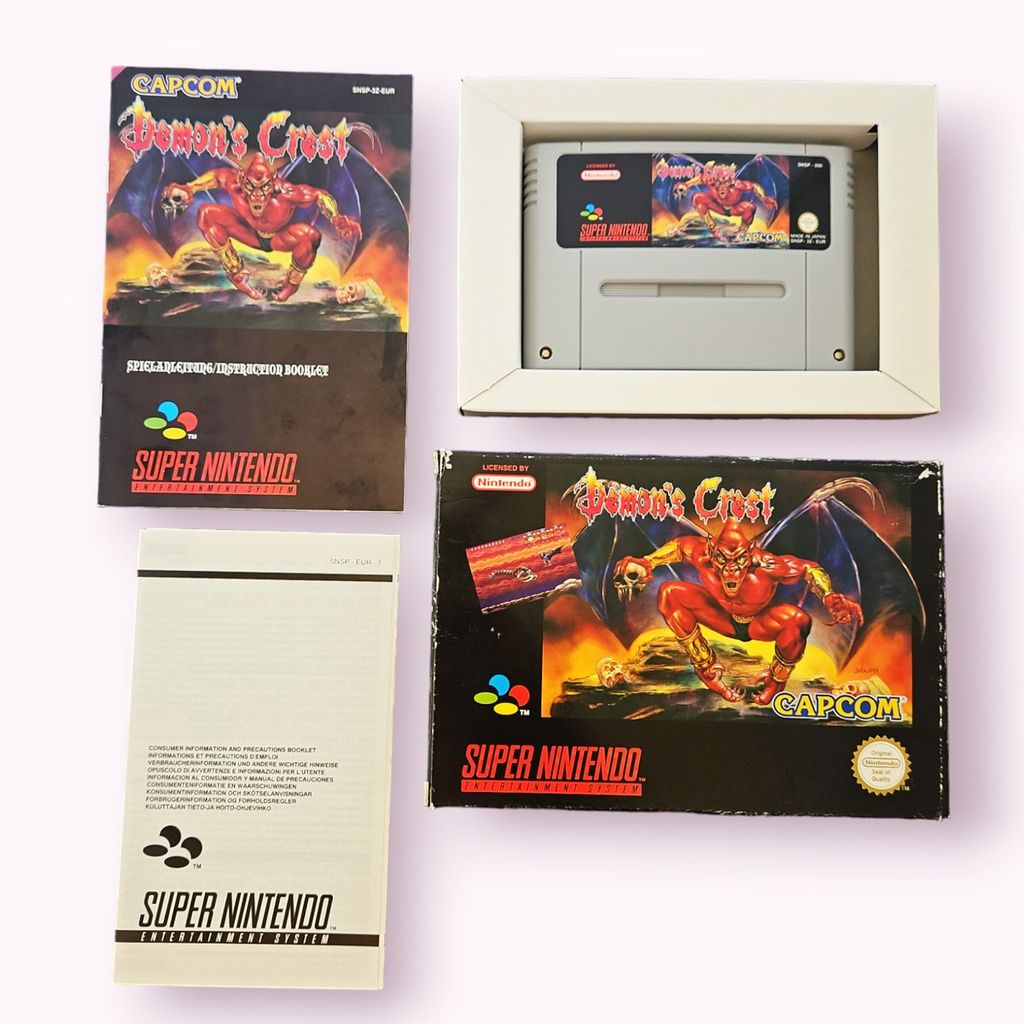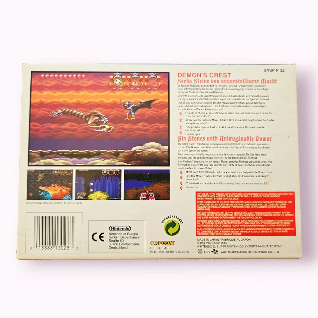 Demon's Crest is a sequel to Gargoyle's Quest. Once, the world of demons and the world of humans co-existed in harmony. But then six mysterious crests fell from the sky onto the earth, crests of six elements: fire, water, air, earth, time, and heaven. The demons became obsessed with the crests and with the power hidden in them, and so a civil war started. Finally, the Red Demon named Firebrand got all the crests but one - the crest of heaven. The Dragon Demon possessed this crest, so Firebrand decided to confront him. He defeated the Dragon Demon but was himself severely wounded in battle. While flying back, he was knocked down by a mysterious enemy and lost his crests.
