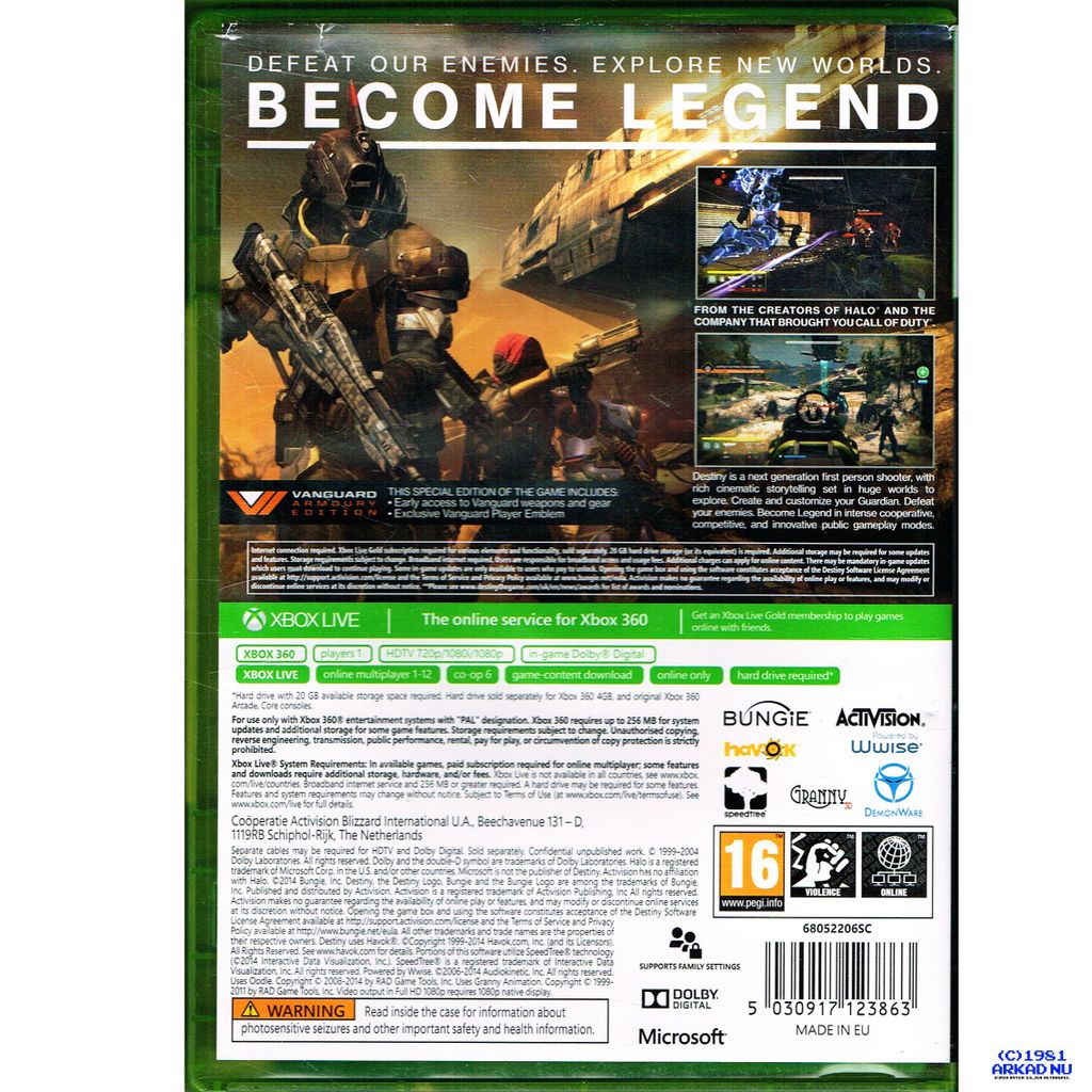 DESTINY VANGUARD ARMOURY EDITION XBOX 360 - 68052206SC
