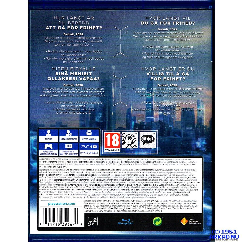 DETROIT BECOME HUMAN PS4 - CUSA-00717 SVENSK UTGÅVA