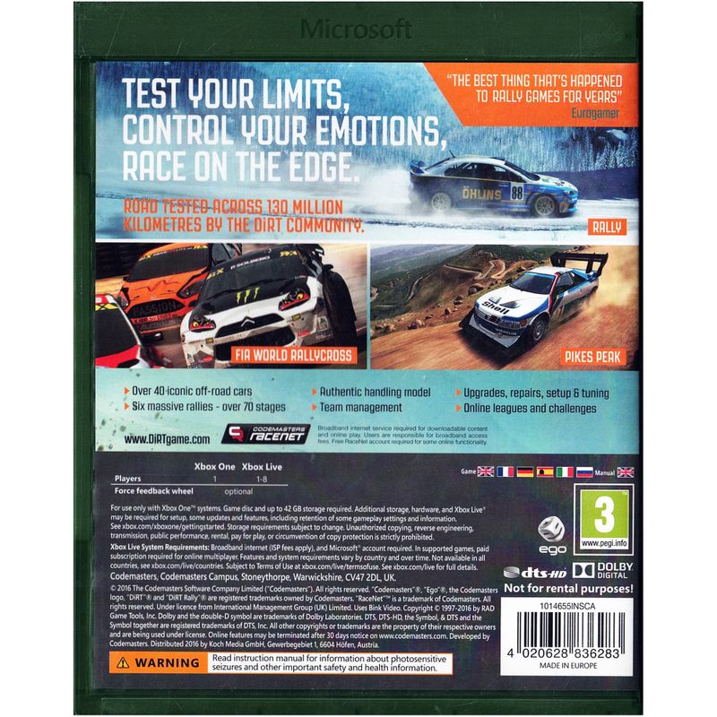Beskrivning av DIRT RALLY XBOX ONE