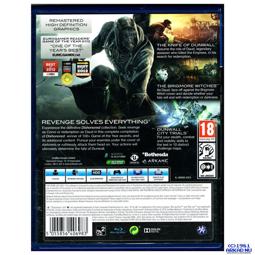 Beskrivning av DISHONORED DEFINITIVE EDITION PS4