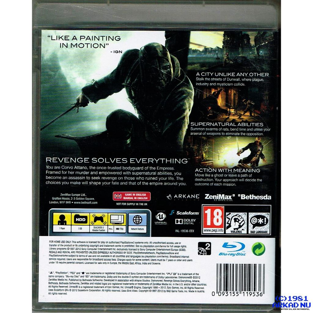 Spelet spelas från ett förstapersonsperspektiv och tillåter spelaren att göra en serie morduppdrag på en mängd olika sätt. Uppdragen kan slutföras genom smygande, strider eller en kombination av båda. När spelaren utforskar varje nivå öppnas nya vägar och alternativ för att klara av uppdragens mål, och det är möjligt att slutföra samtliga uppdrag, där spelaren eliminerar Corvos alla mål, på ett icke-dödligt manér. Berättelsen och uppdragen ändras som svar på spelarens våldshandlingar eller brist på sådana. Magiska förmågor och utrustning är utformade för att kombineras för att skapa nya och varierande effekter.