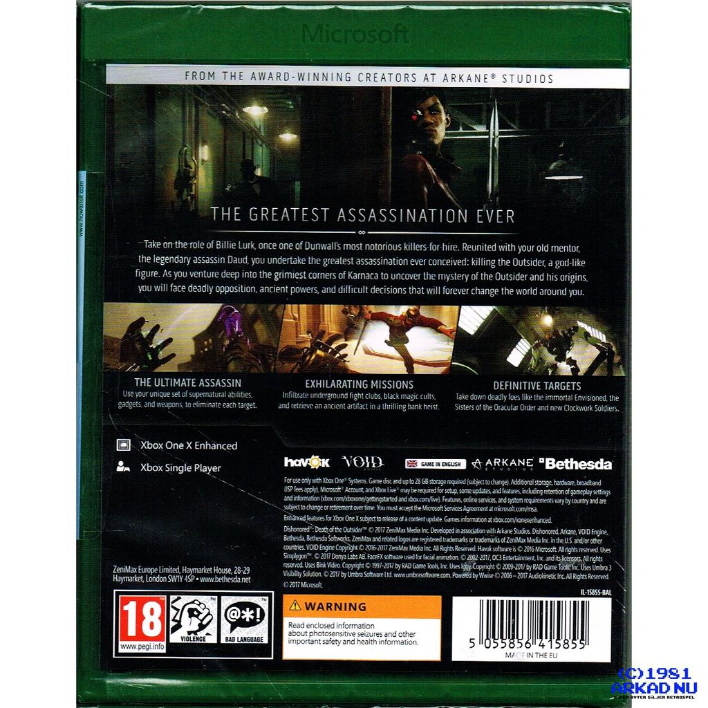 Ta dig an rollen som Billie Lurk, en gång en av Dunwalls mest anmärkningsvärda mördare-för-hyra. Återförenad med din gamla mentor, den legendariska mördaren Daud, åtar du dig att göra det största mordet som någonsin uttänkts: Att döda Outsider, en gudliknande figur som Daud ser som bidragande i några av rikets mest ohederliga ögonblick. När du riskerar dig djupt in i Karnacas smutsiga hörn för att avslöja Outsider och hans ursprungliga mysterium, möter du dödligt motstånd, mörka forntida krafter och svåra beslut som för evigt kommer att förändra världen runt dig.