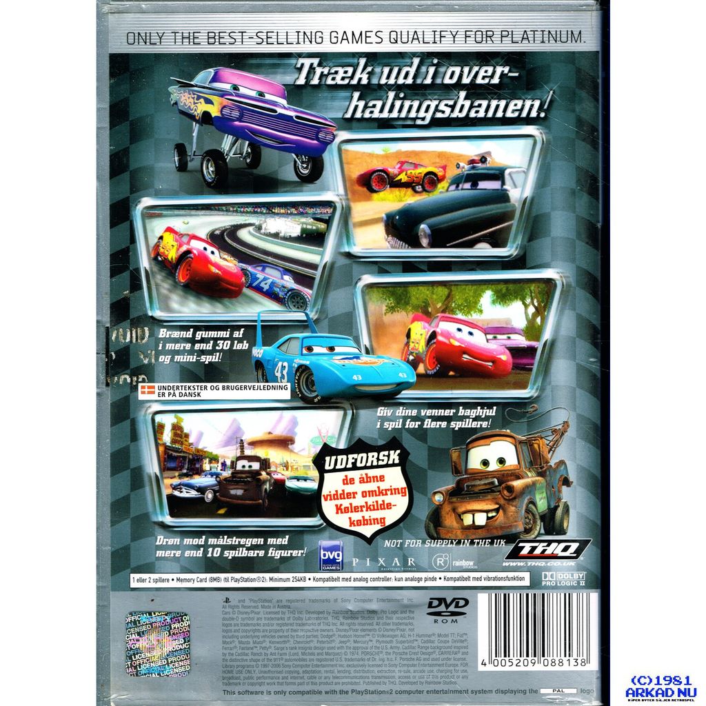 DISNEY PIXAR BILER PS2 PLATINUM - SLES-54015 DANSK UTGÅVA