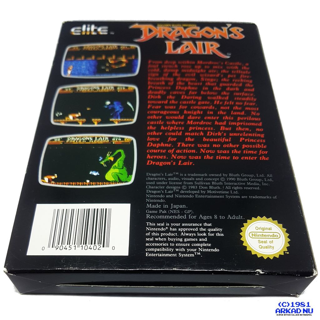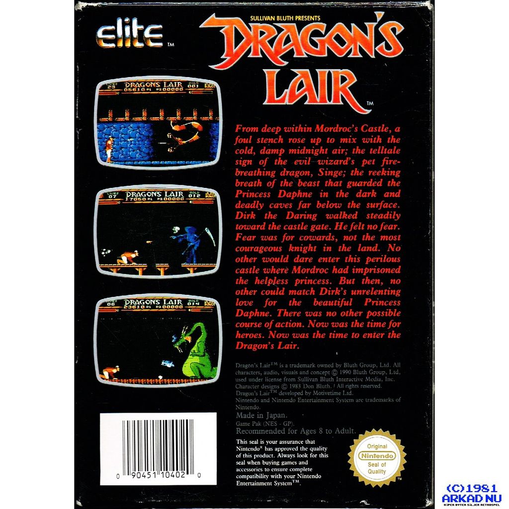 Beskrivning av DRAGONS LAIR NES SCN