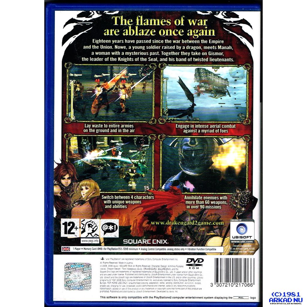 Drakengard 2, known in Japan as Drag-On Dragoon 2: love red, ambivalence black is an action role-playing video game developed by Cavia and published by Square Enix in Japan and Ubisoft in all other territories exclusively for the PlayStation 2. It is the second entry in the Drakengard series, set after the events of the original Drakengard: the story revolves around Nowe, a boy raised by the dragon Legna, fighting against a tyrannical faction of knights, encountering characters from the previous game and becoming entangled in the fate of the world.